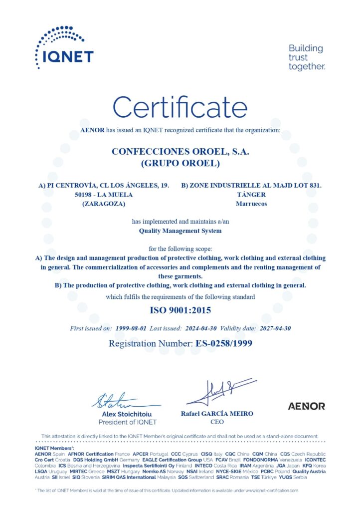 At the Oroel Group we have a Quality Management System certified according to the ISO 9001:2015 standard, which allows us to: