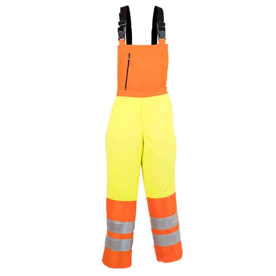 Ce pantalon à bretelles anti-coupure avec fermeture éclair est parfait pour les travaux de déblaiement.