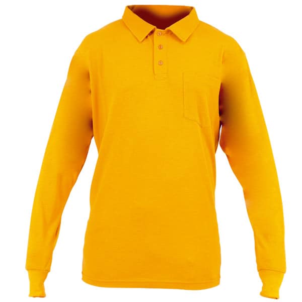 Le polo à manches longues ignifuge et antistatique jaune est composé de 54 % de modacrylique, 44 % de coton et 2 % d’antistatique.