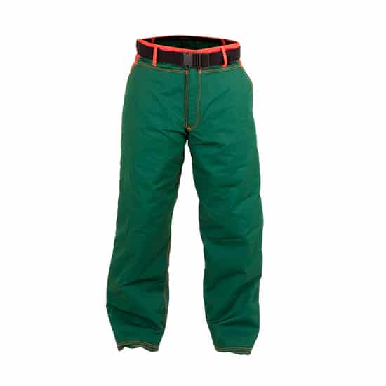 Este pantalón anticorte con cremallera y botón asegura la máxima protección contra motosierras.